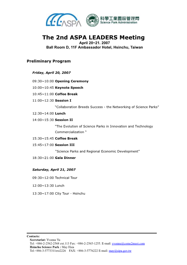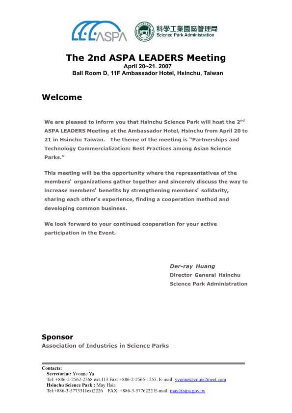 The 2nd ASPA LEADERS Meeting (2007 / Hsinchu,Taiwan)