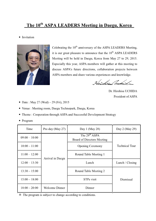 The 10th ASPA LEADERS Meeting (2015 / Daegu, Korea)