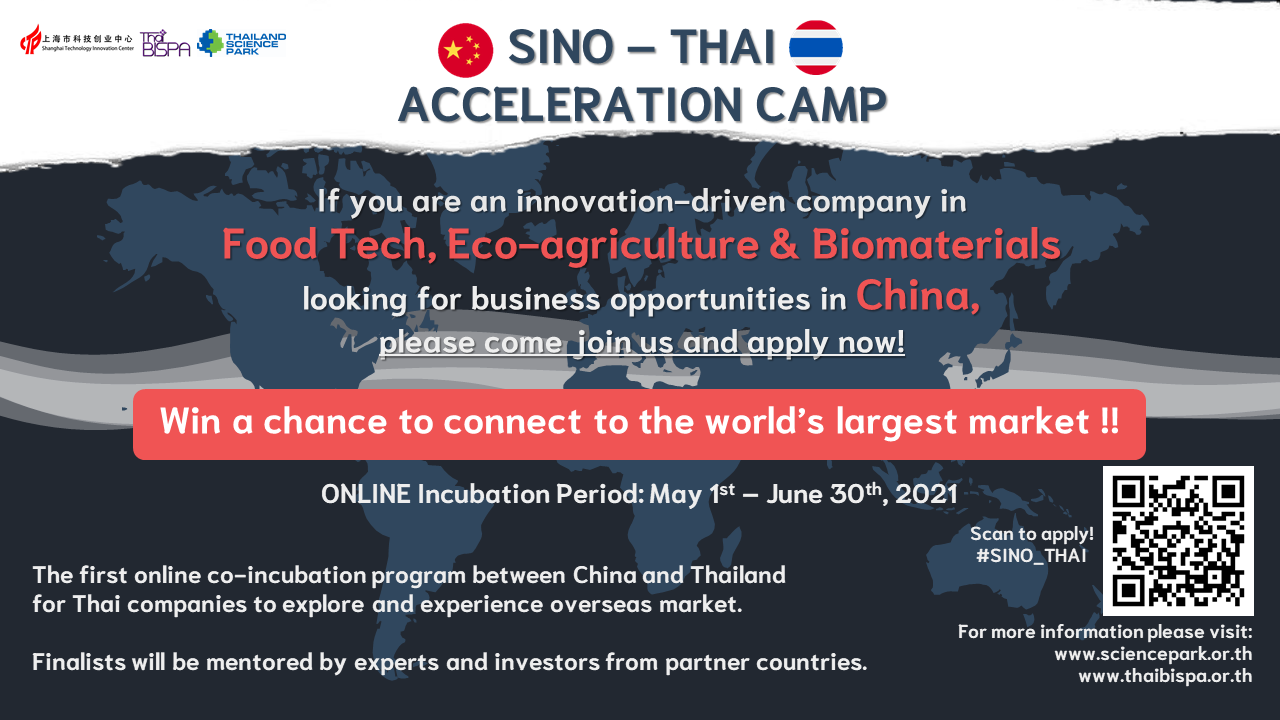 Established in 2002, Asian Association of Business Incubation (AABI) is an international nonprofit organization that focuses on building incubation ecosystem in Asian-pacific region and supports ambitious Asian tech-SMEs in going globally. In 2021, both as association members of AABI, Shanghai Technology Innovation Center (STIC) and Thai Business Incubators and Science Parks Association (Thai-BISPA), in association with Thailand Science Park (TSP), jointly initiate the pilot co-acceleration program under the AABI framework, “Sino-Thai Acceleration Camp [Online]”, working together with local incubators and accelerators from both sides to mutually support business expansion and international collaboration of tech-companies from both China and Thailand.